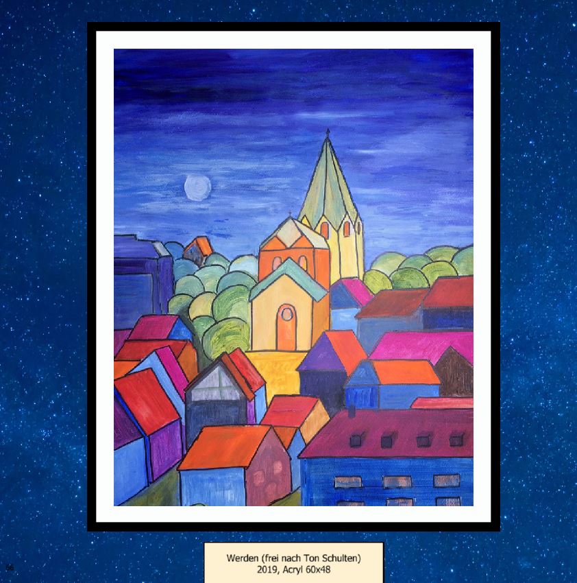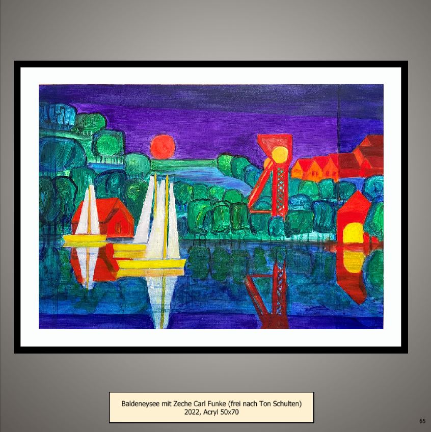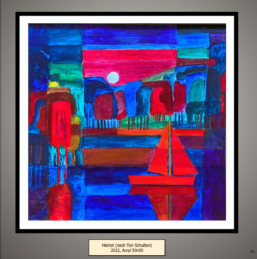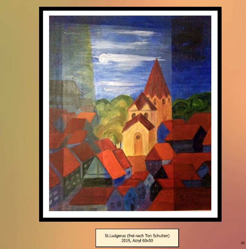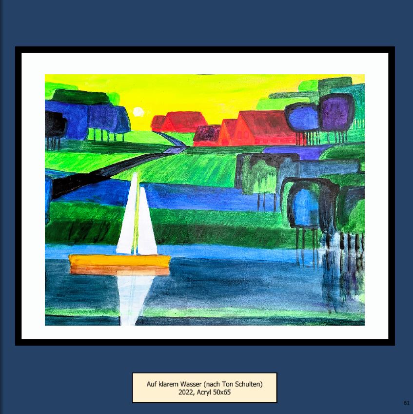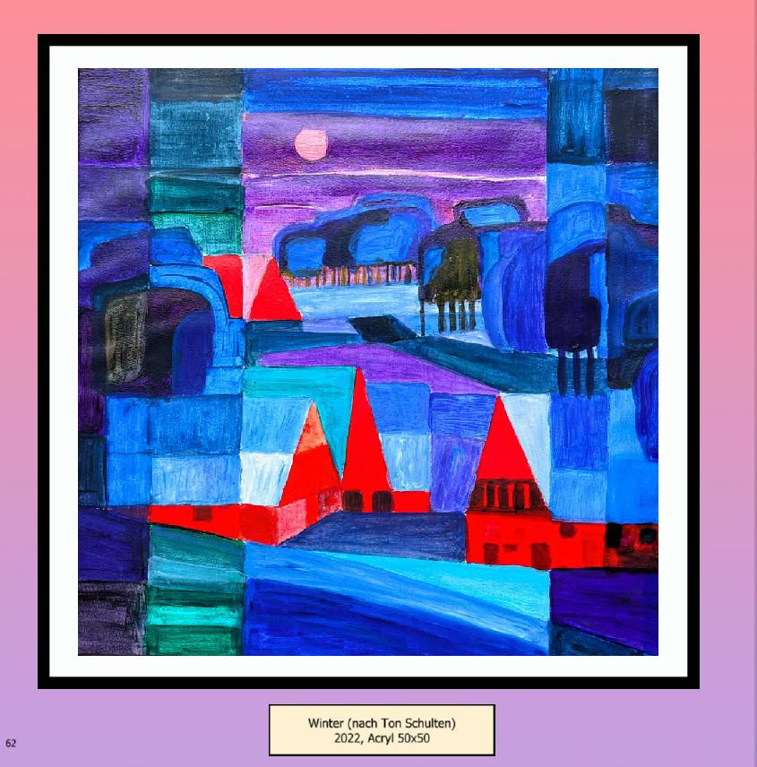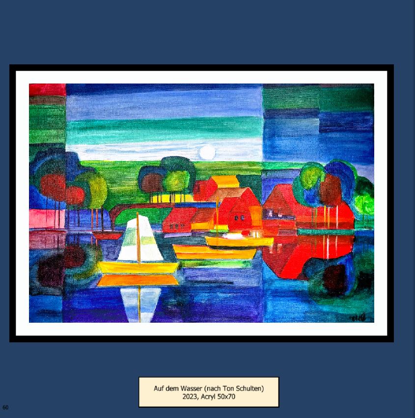 In der Ausstellung sind 6 Kopien von Bildern von Ton Schulten und 6 eigene Motive, gemalt im Stil von Ton Schulten