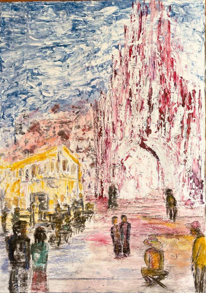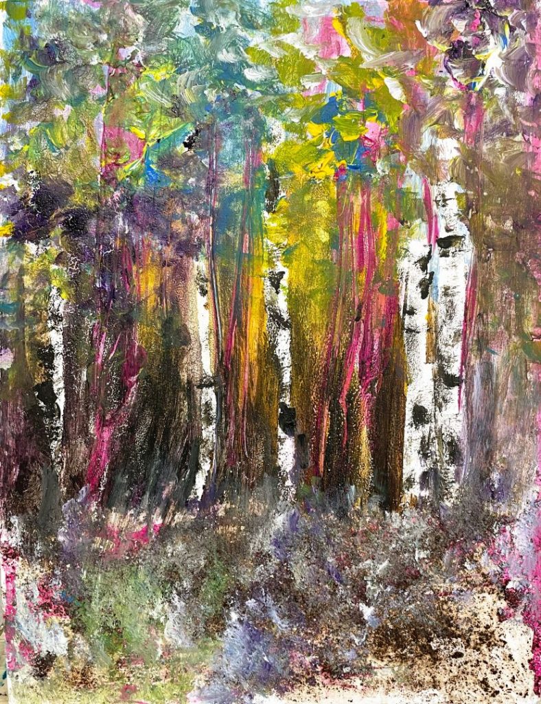 Im VHS-Workshop mit Annemarie Arndt wurden wir ermutigt neue Materialien und Methoden auszuprobieren. Das ist für mich immer spannend weil ich bei den Materialien nicht so experimentierfreudig bin wie bei der Malweise.