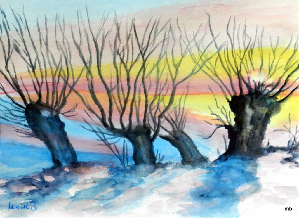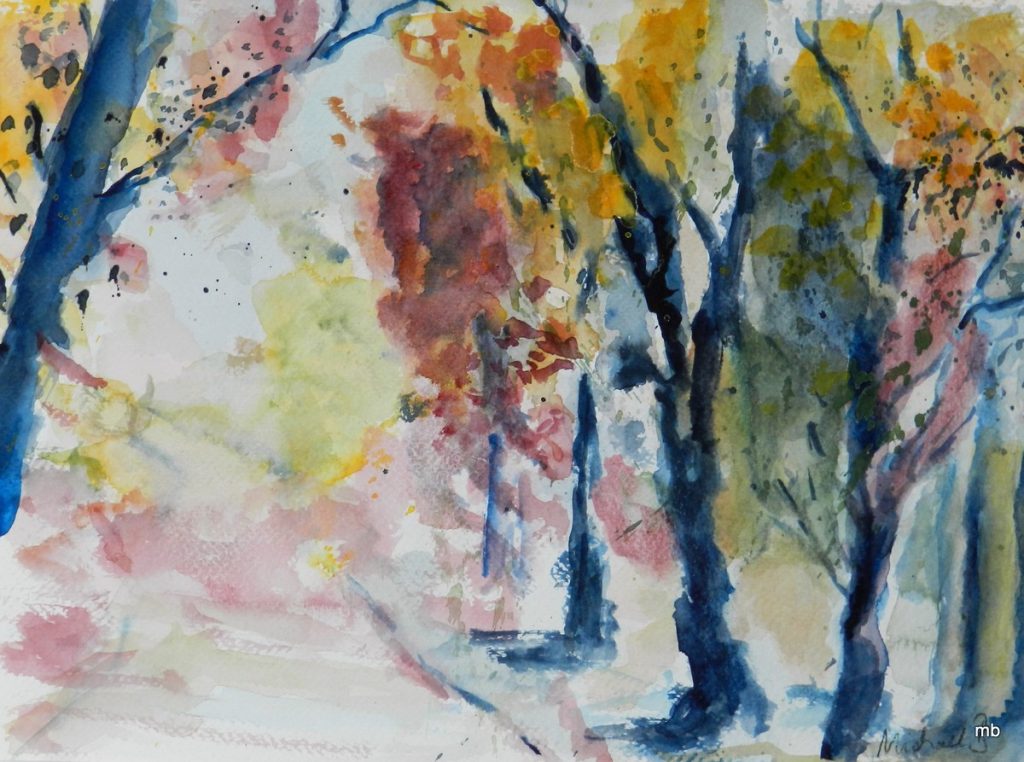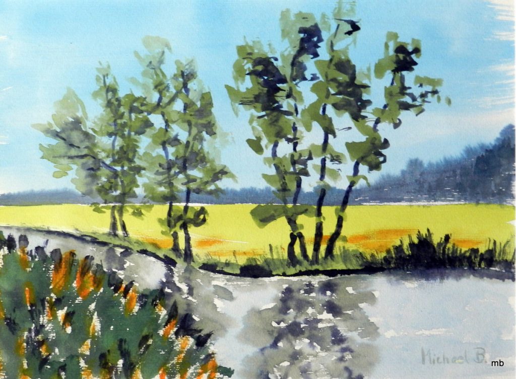 Im Privatunterricht bei Willi habe ich dann meine Grundfertigkeiten im Aquarellieren erarbeitet, vom gezielten Mischen der Farben über alle wesentlichen Aquarell-Techniken wie Lasieren und den verschiedenen Effekten von „Nass in Nass“ bis „Trocken auf Trocken“.