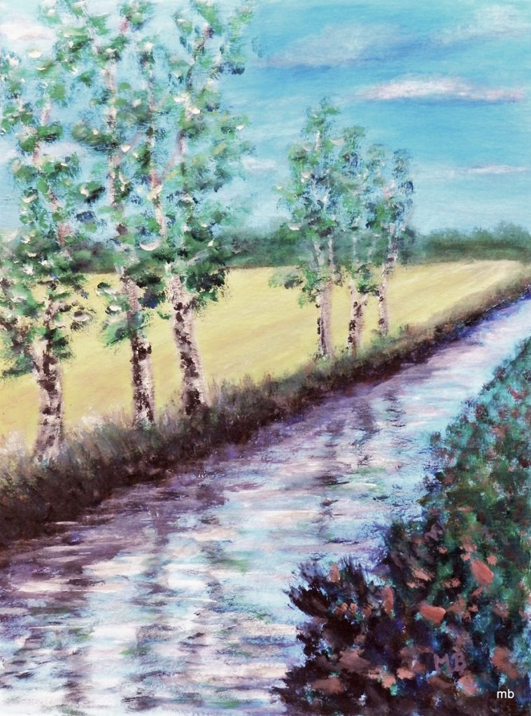 Landschaften sind das gängigste Motiv in der Malerei. Nirgendwo sind die Freiheiten in der Wiedergabe der subjektiven Sicht so groß. Ja – auch in eigentlich abstrakten Bildern entdecken wir oft eine Landschaft. Landschafts-Motive sind der geeignete Einstieg in die Malerei, bringen schnell Erfolgserlebnisse. Niemand wird vergleichen, ob der Baum wirklich an der richtigen Stelle steht und sich genau so verzweigt. Diese Freiheiten kann man dann auch nutzen, um eine kompositorische Spannung zu erzeugen.